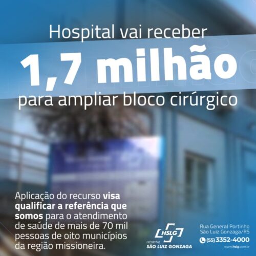Hospital vai receber 1,7 milhão para ampliar bloco cirúrgico